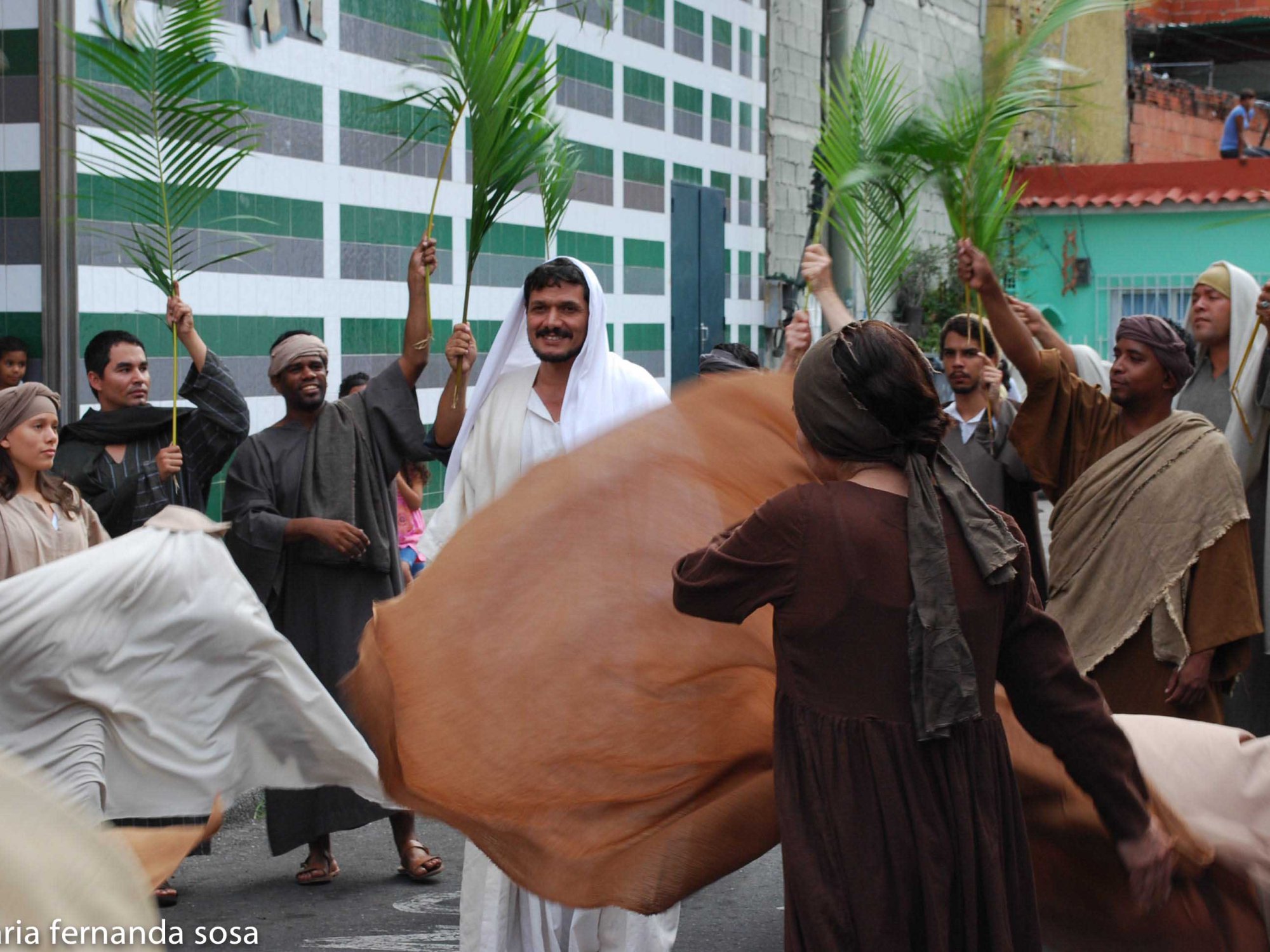 Como parte de la celebración de la Semana Santa un grupo de artistas montó esta obra sobre la vida y muerte de Jesucristo en las calles de El Pedregal.